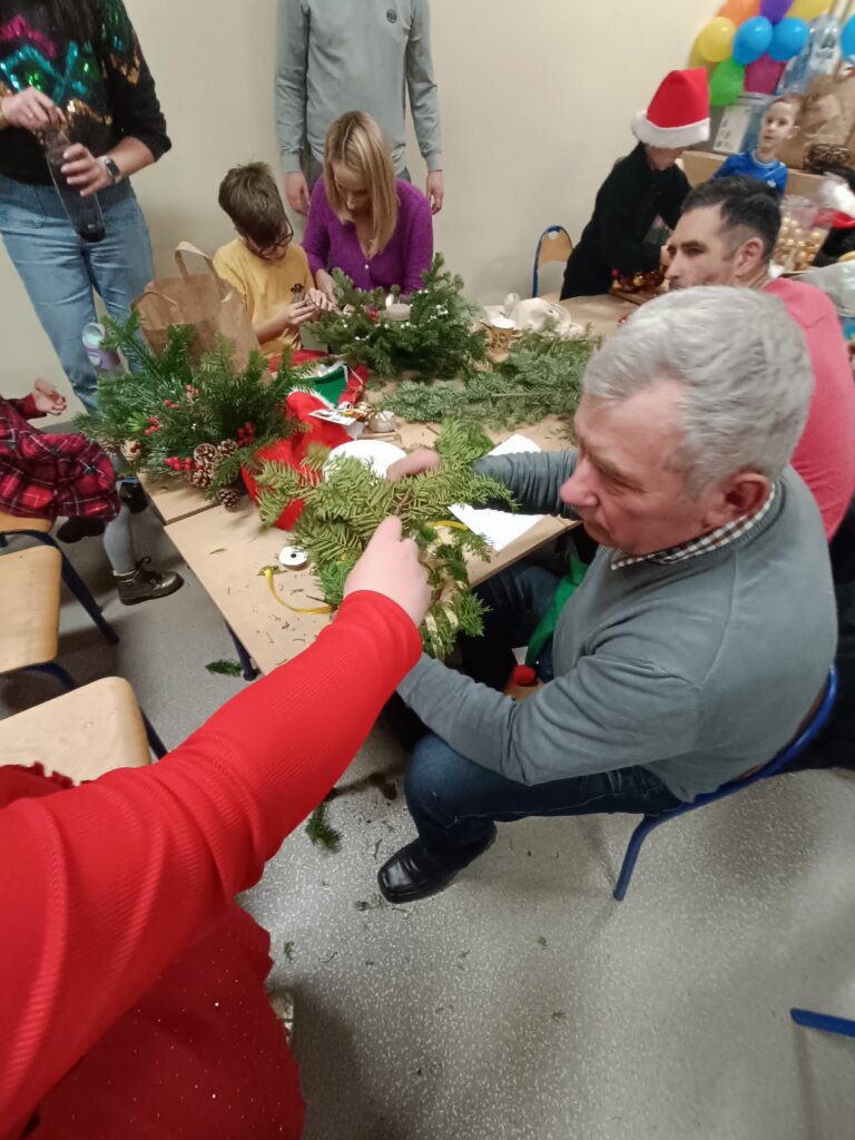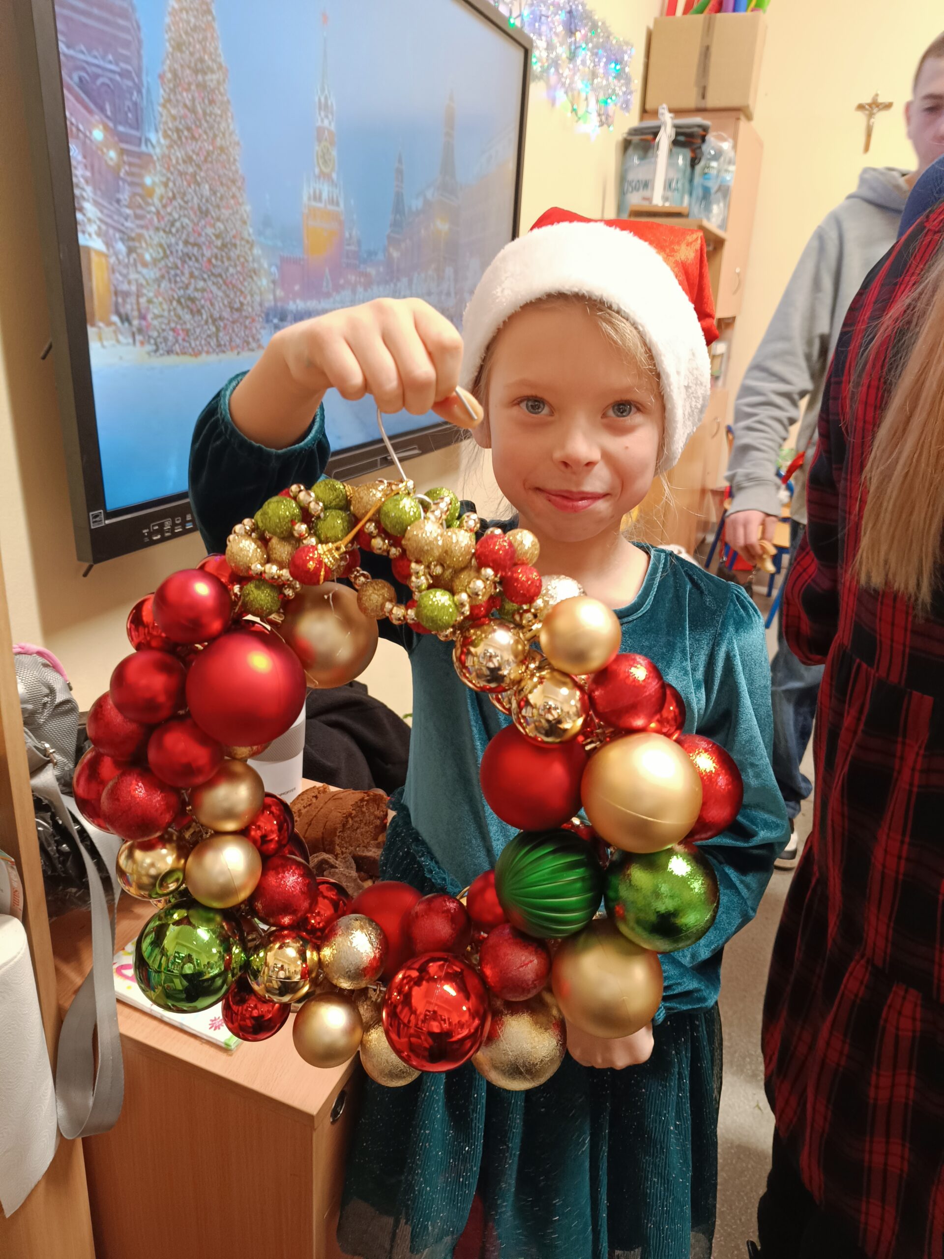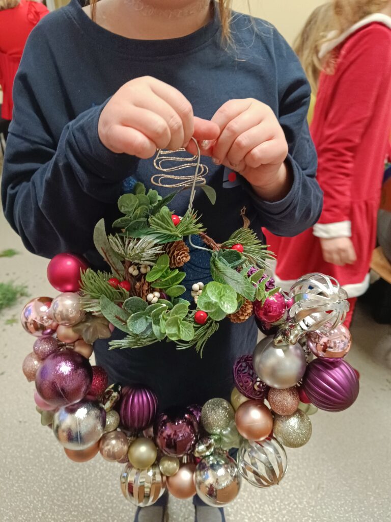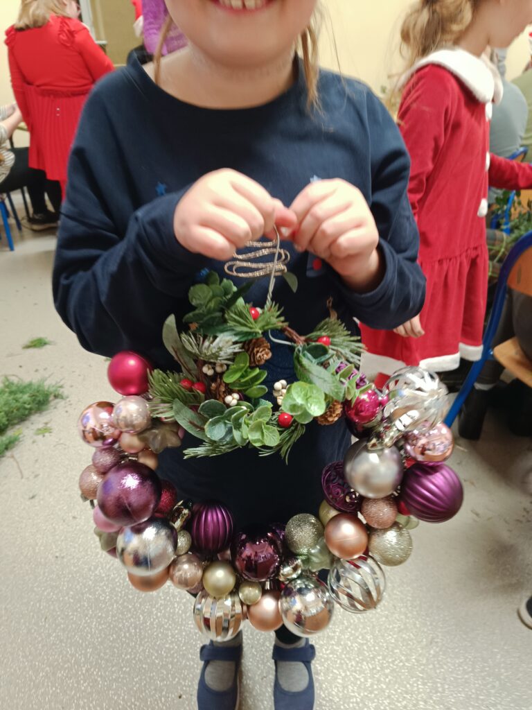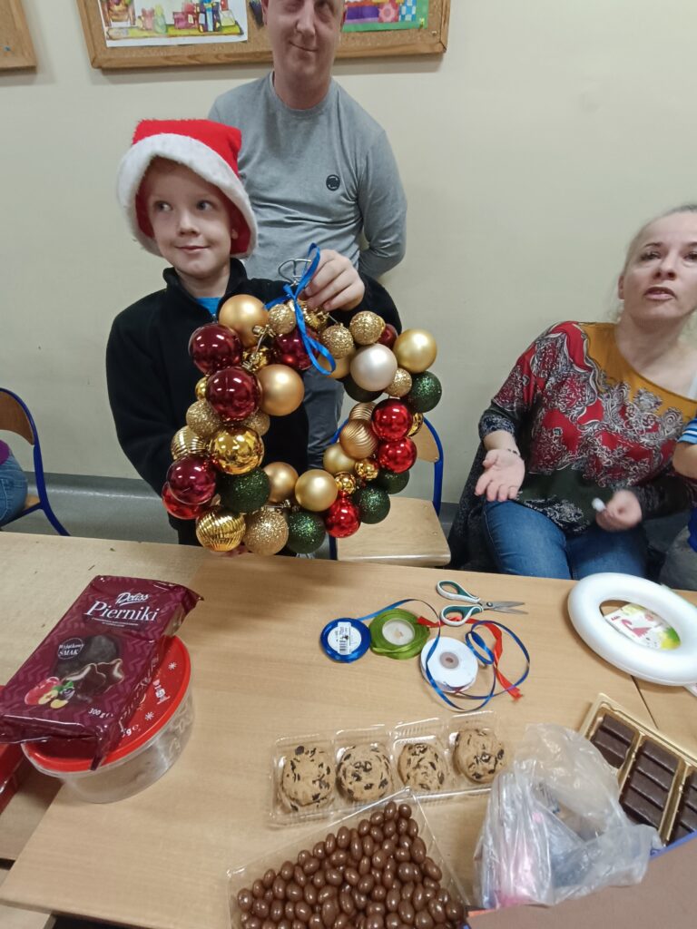 Rodzice wraz z dziećmi wykonali wianki z bombek , kartki, oraz piękne stroiki.