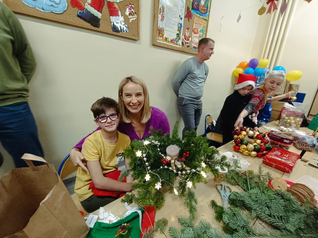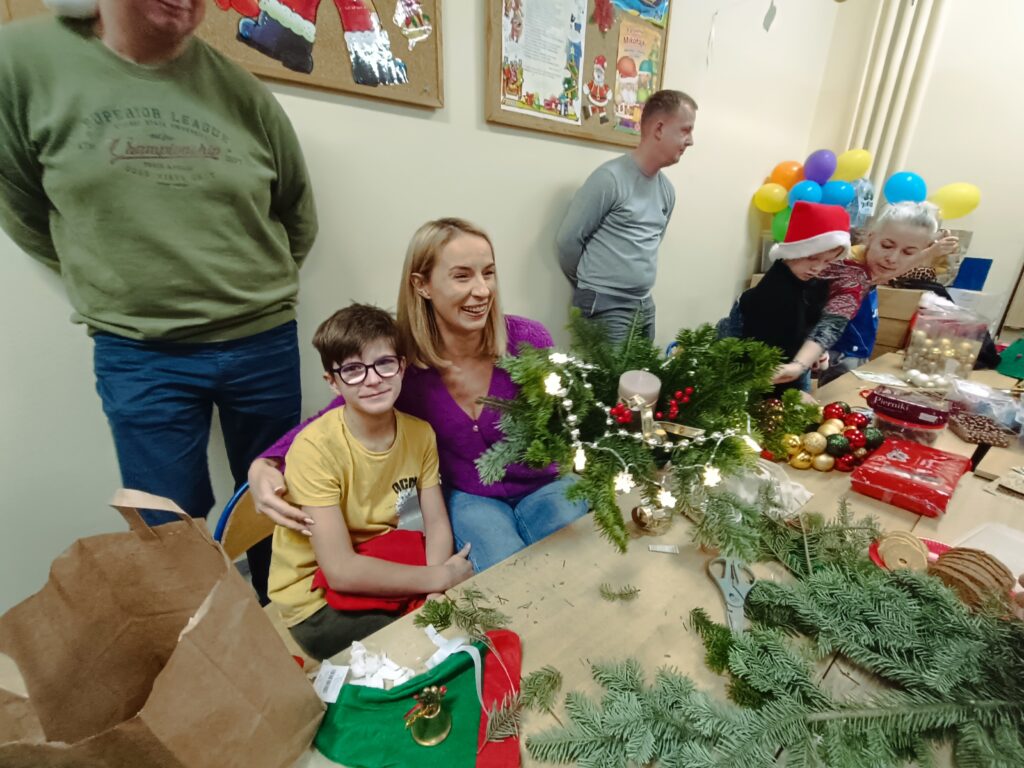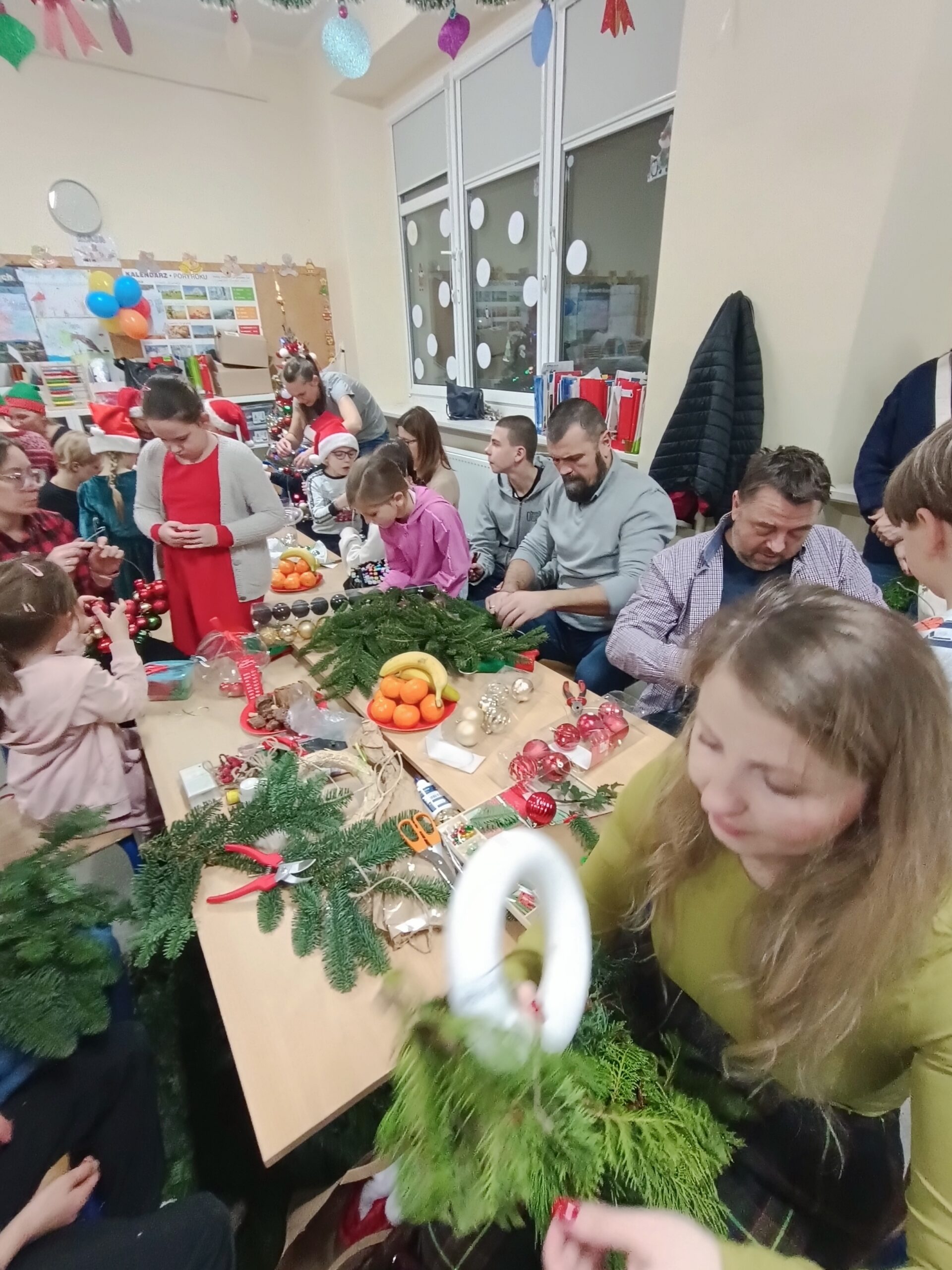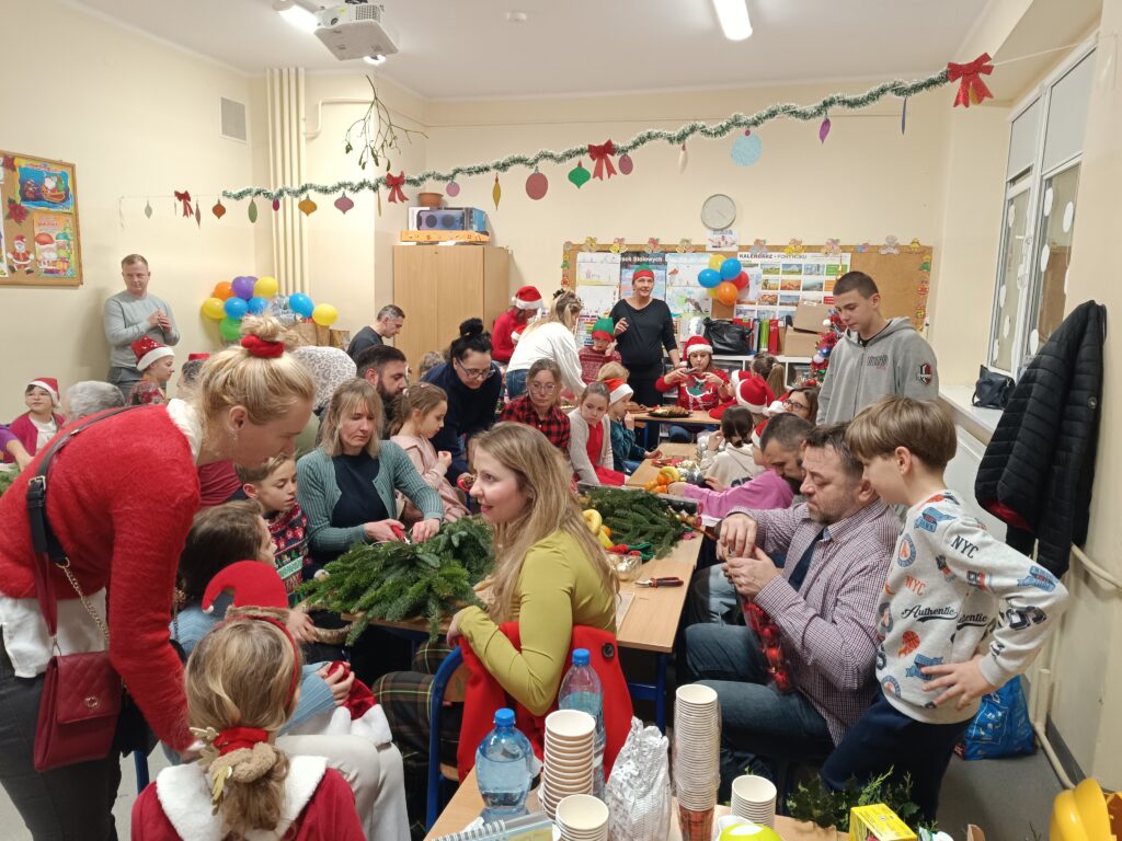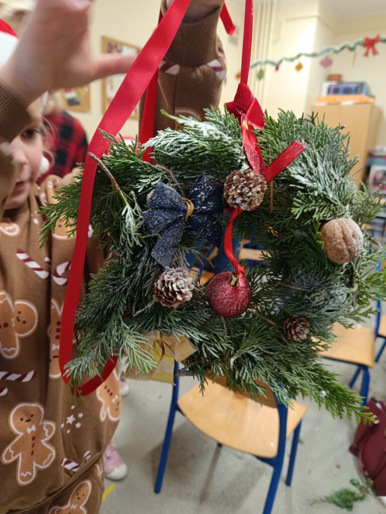 Rodzice wraz z dziećmi wykonali wianki z bombek , kartki, oraz piękne stroiki.