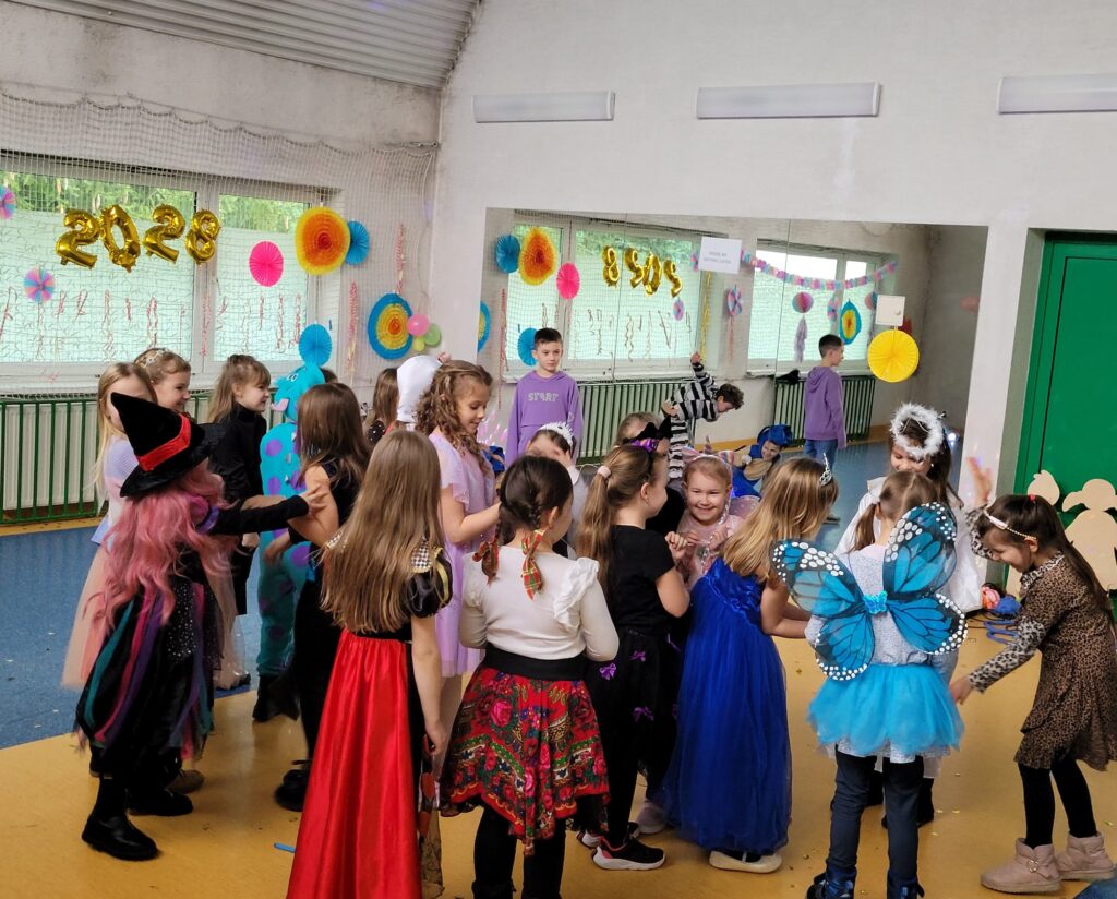 W ostatnim tygodniu przed feriami najmłodsi uczniowie naszej szkoły mają zabawy karnawałowe. We wtorek pierwsza grupa wzięła udział w balu, w najbliższy piątek swój taniec rozpoczną inne dzieci. W tych dniach w szkole pojawiają się kolorowe postacie. Uczestnicy balu przegrają się za bohaterów znanych z bajek, super bohaterów, pojawiają się także policjanci, strażacy, czy politycy. Bal prowadzi pani Mada, która już kolejny rok przygotowała dla uczestników różne zabawy, konkurencje i wspaniałą muzykę.