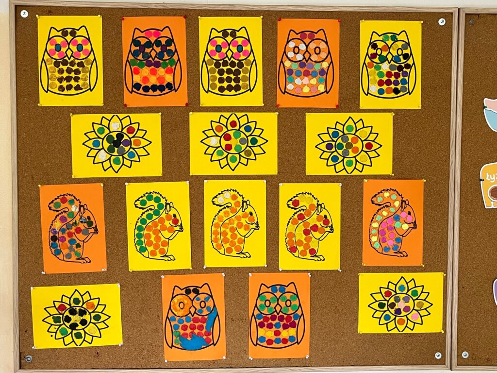 Kolorowe kropki powstały z plasteliny, farb i kredek.