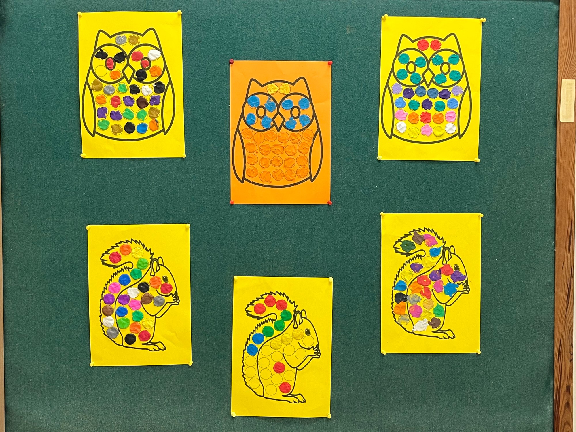 Kolorowe kropki powstały z plasteliny, farb i kredek.