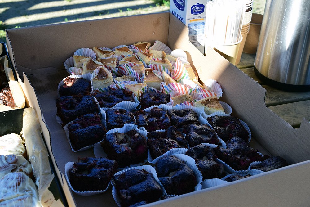A gdy praca została wykonana… na uczestników akcji czekał posiłek w postaci hot-dogów, popcornu z naszej szkolnej retro maszyny, czy domowych wypieków przyniesionych przez rodziców. Do tego, do picia była kawa, herbata i woda.