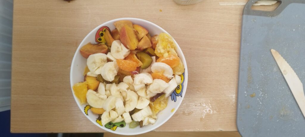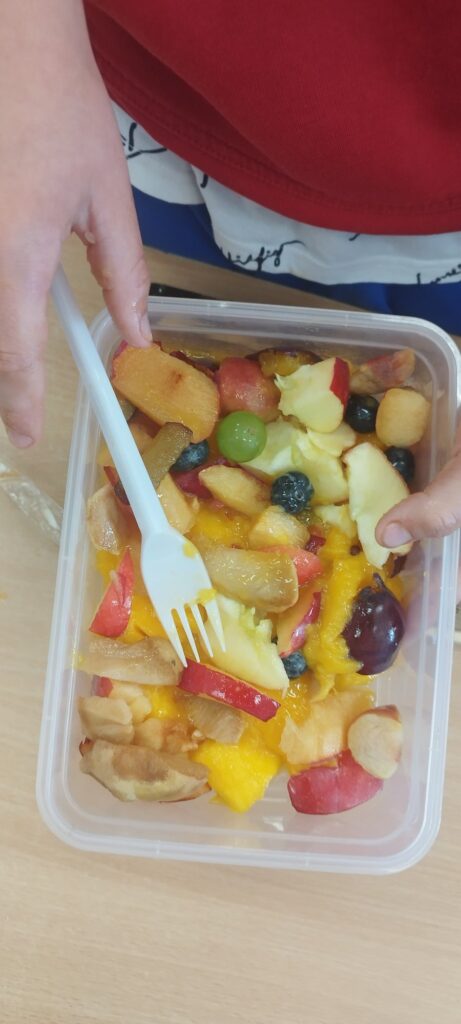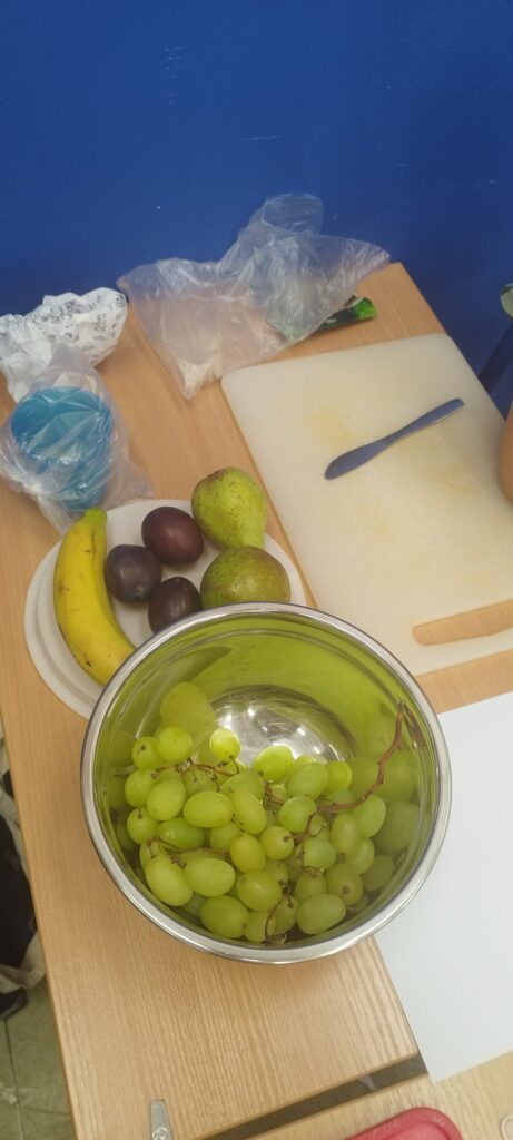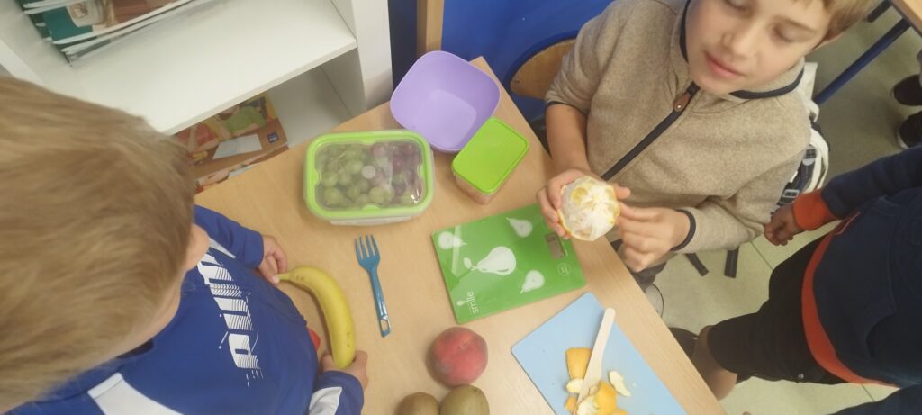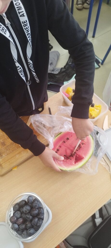 W zdrowym ciele – zdrowy duch – to hasło przewodnie lekcji w klasie 2c (żeglarskiej), która stawia nie tylko na sport, ale również zdrowe odżywianie. Na zajęciach poznaliśmy tajniki witamin i soli mineralnych, a także ich wpływ na nasz organizm. Nauczyliśmy się z czym łączyć poszczególne warzywa i owoce, aby dały nam jak najwięcej walorów odżywczych. Wykonaliśmy nie tylko sałatkę owocową, ale również jeżyki – gryziki.