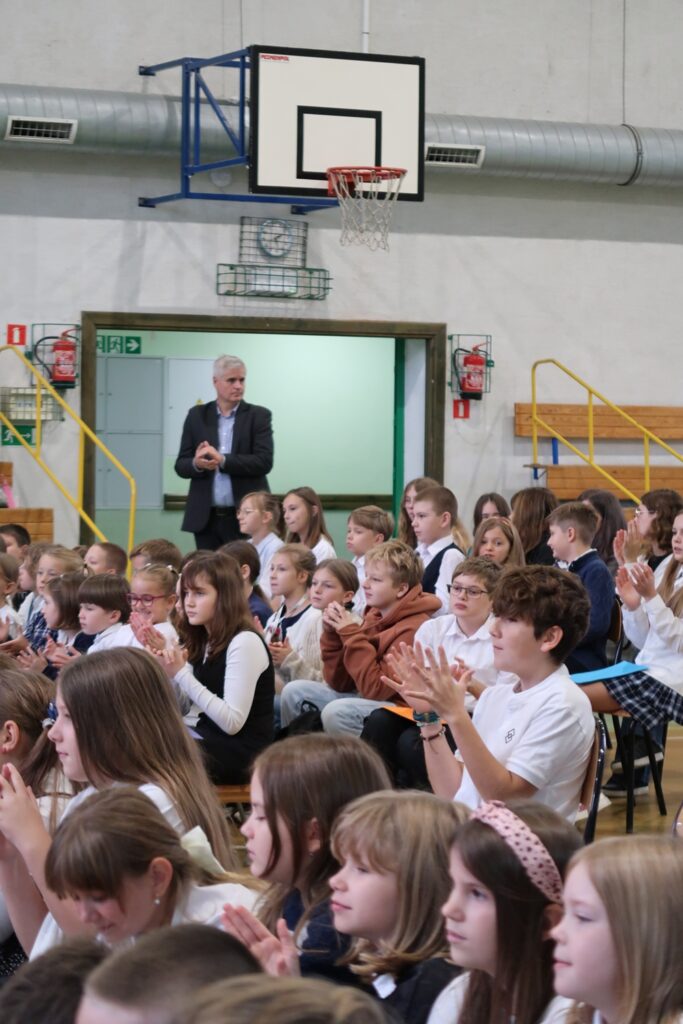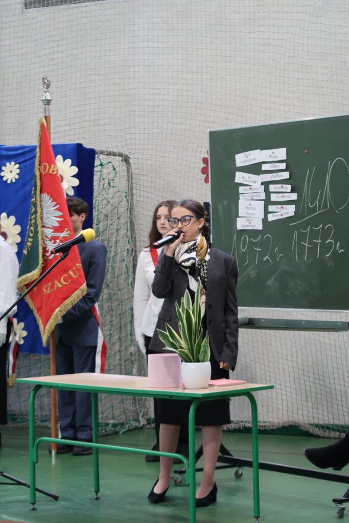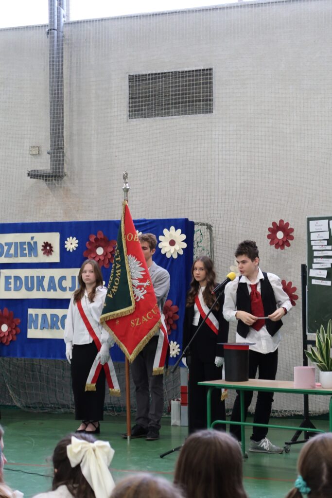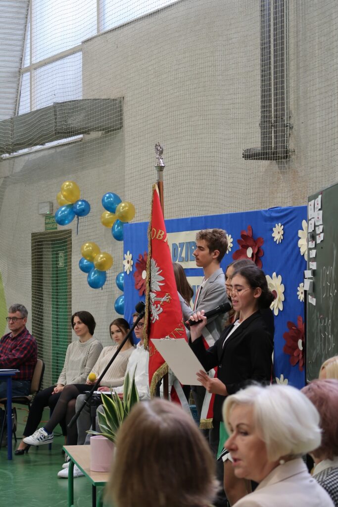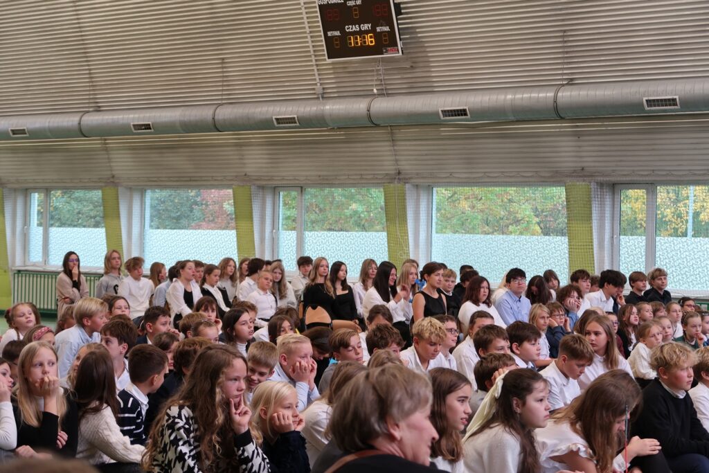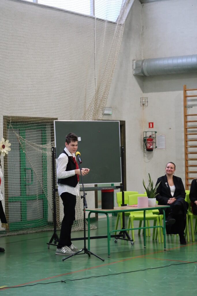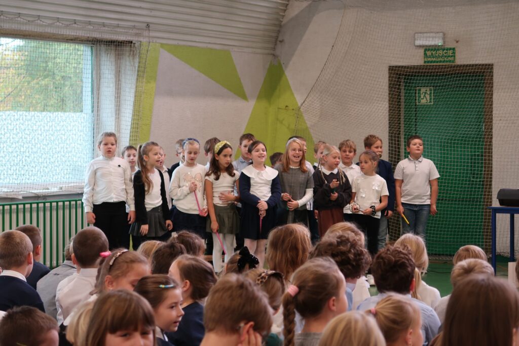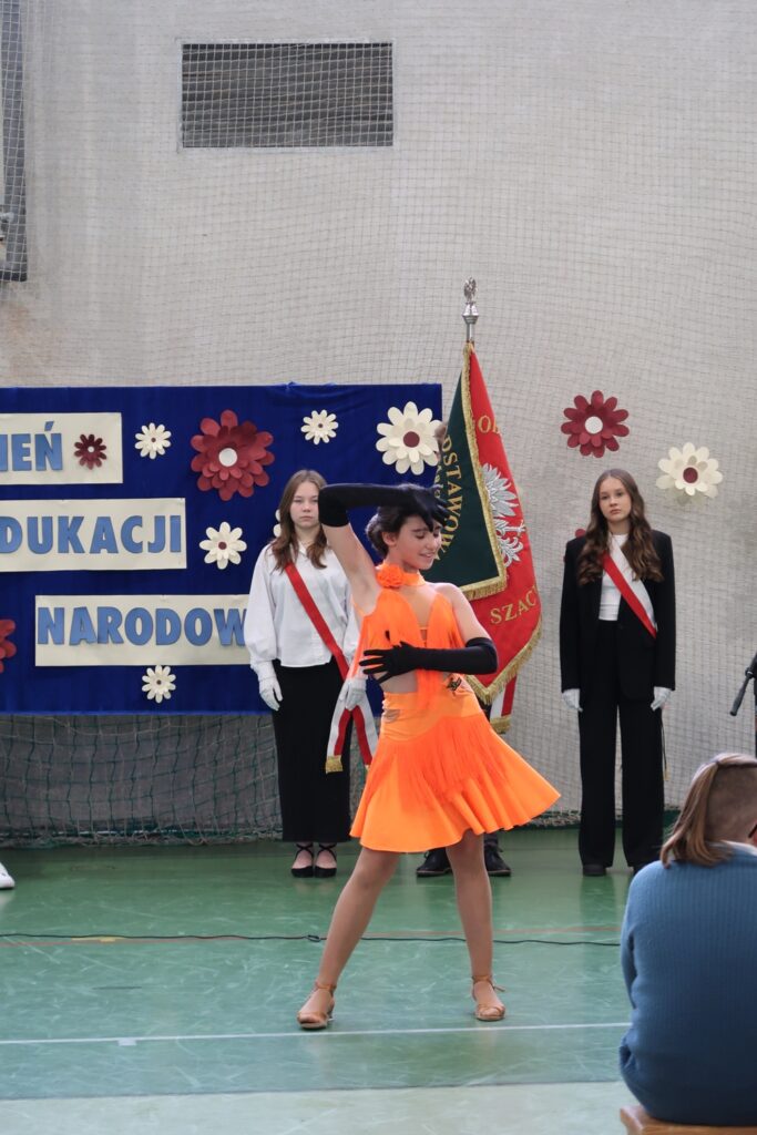Ważnym momentem tego święta było uczestnictwo w uroczystej akademii, którą przygotowali uczniowie klasy 6a oraz 8c. Przeprowadzili dla wszystkich niecodzienne lekcje, w ciekawy sposób wzbogacając uczniowską wiedzę o historii Dnia Edukacji Narodowej oraz o tym, kiedy święto nauczycieli jest obchodzone w innych krajach. Pojawił się też nauczyciel-czarodziej, a z jego kapelusza – cechy idealnego nauczyciela. Nie obyło się bez sprawdzenia wiedzy uczniów, lecz tym razem bez obawy o słaby stopień! Tylko poprawnie udzielona odpowiedź nagradzana była cukierkiem.