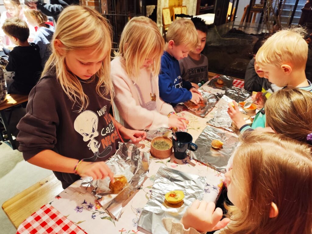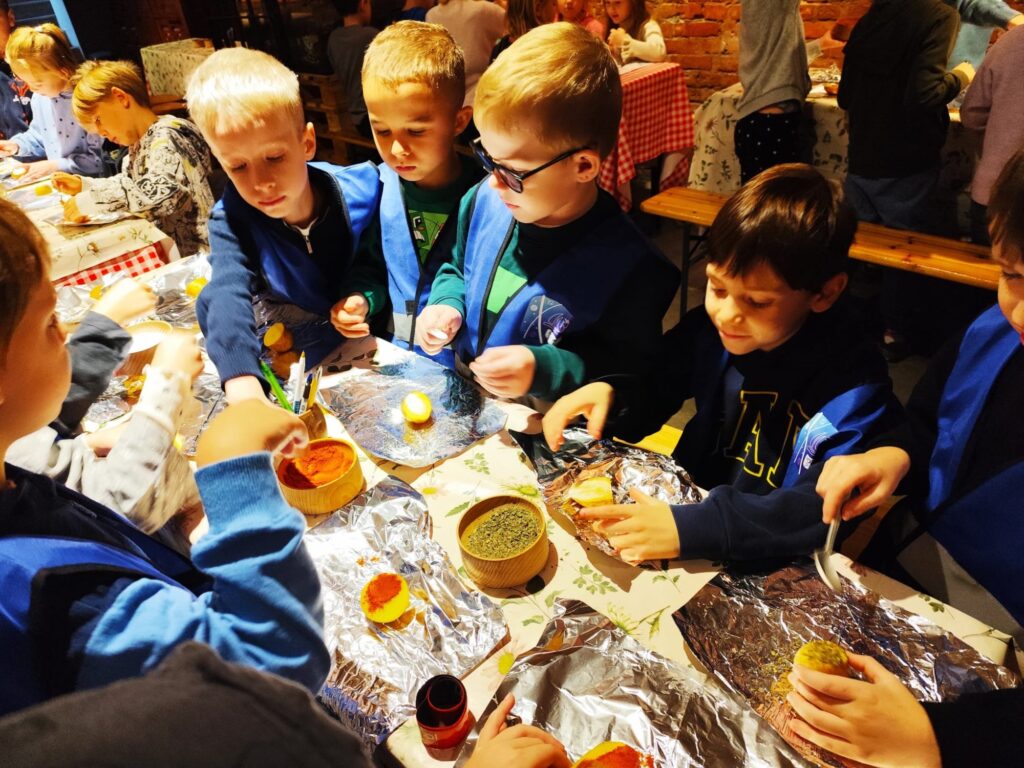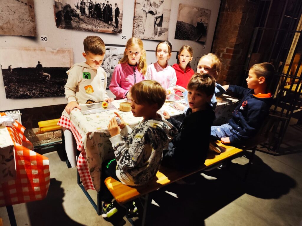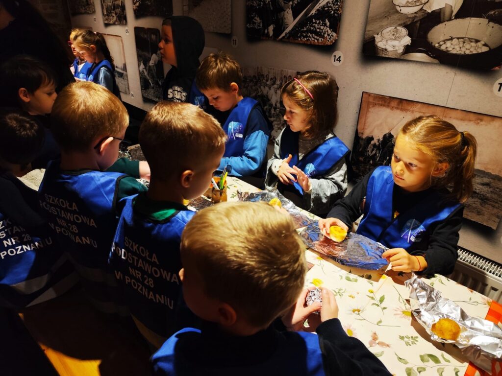 W środę 15.10.2025 r. uczniowie klasy 1a i 1b wybrali się na wycieczkę do Poznańskiego Muzeum Pyry. Pierwszoklasiści wysłuchali historii ziemniaka. Poznali dużo ciekawostek związanych z poznańską pyrą i naszym regionem. Podczas warsztatów każdy uczestnik wycieczki mógł przyrządzić swoją pyrę, która została wypieczona w piecu.