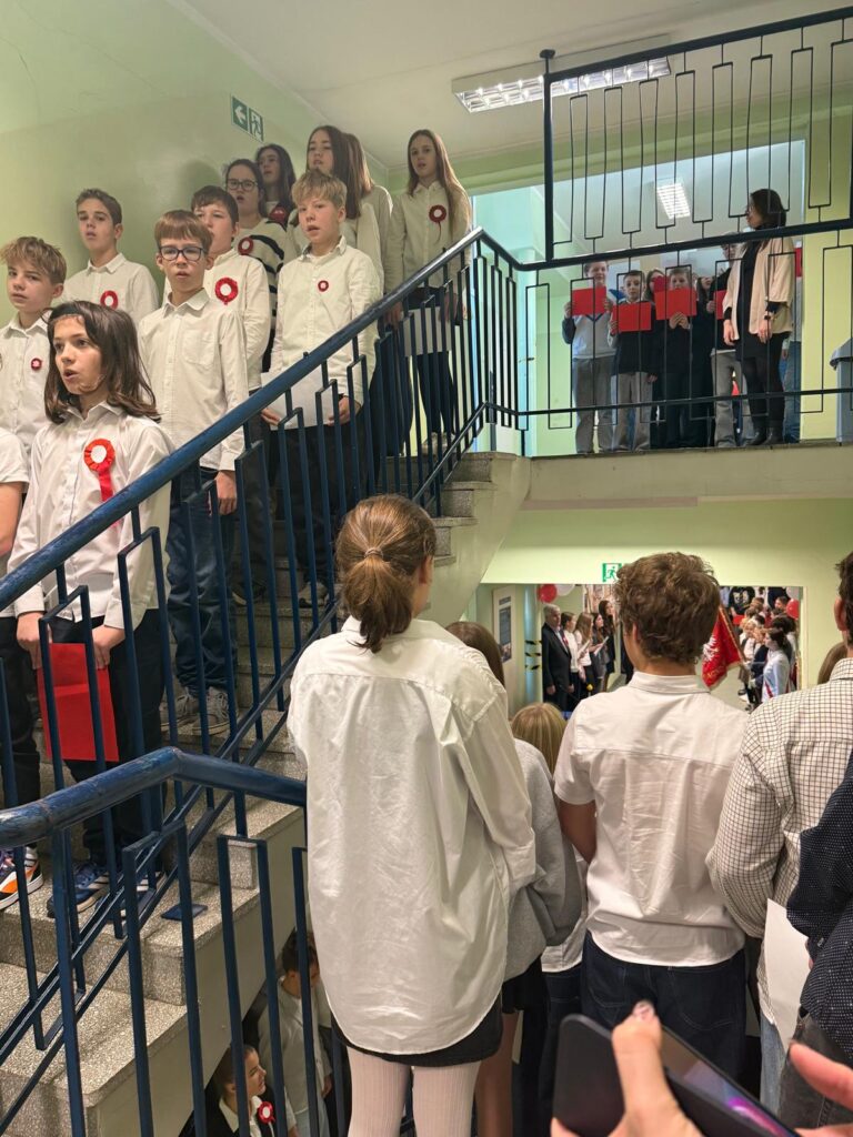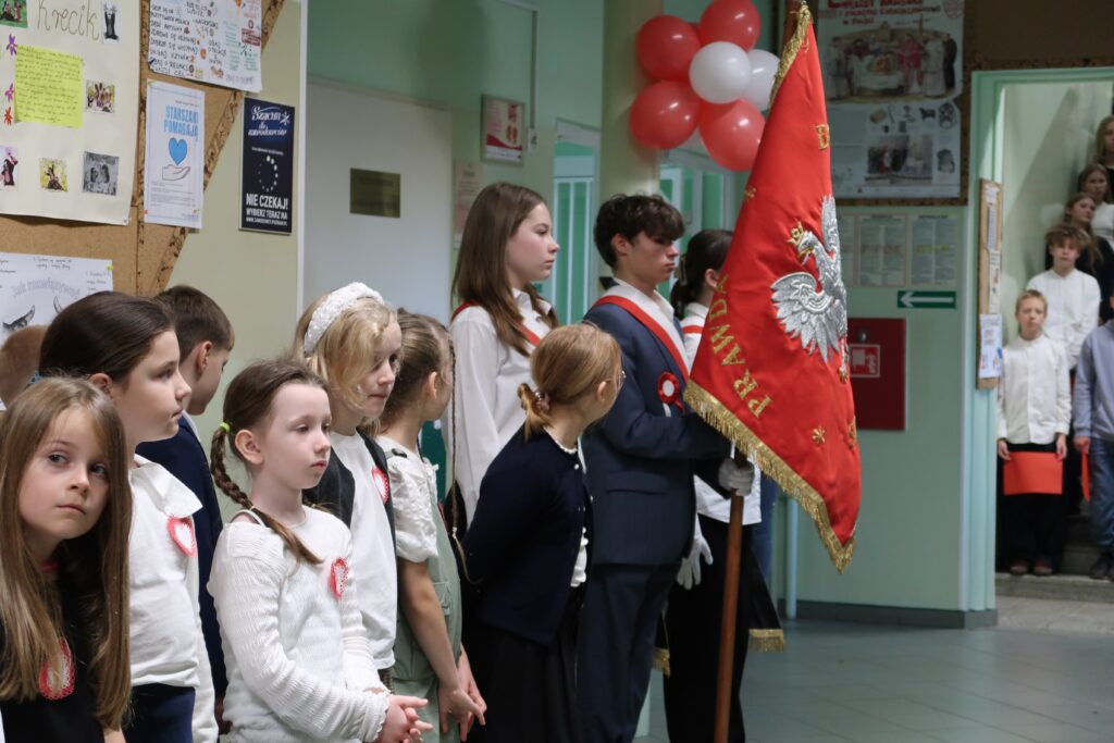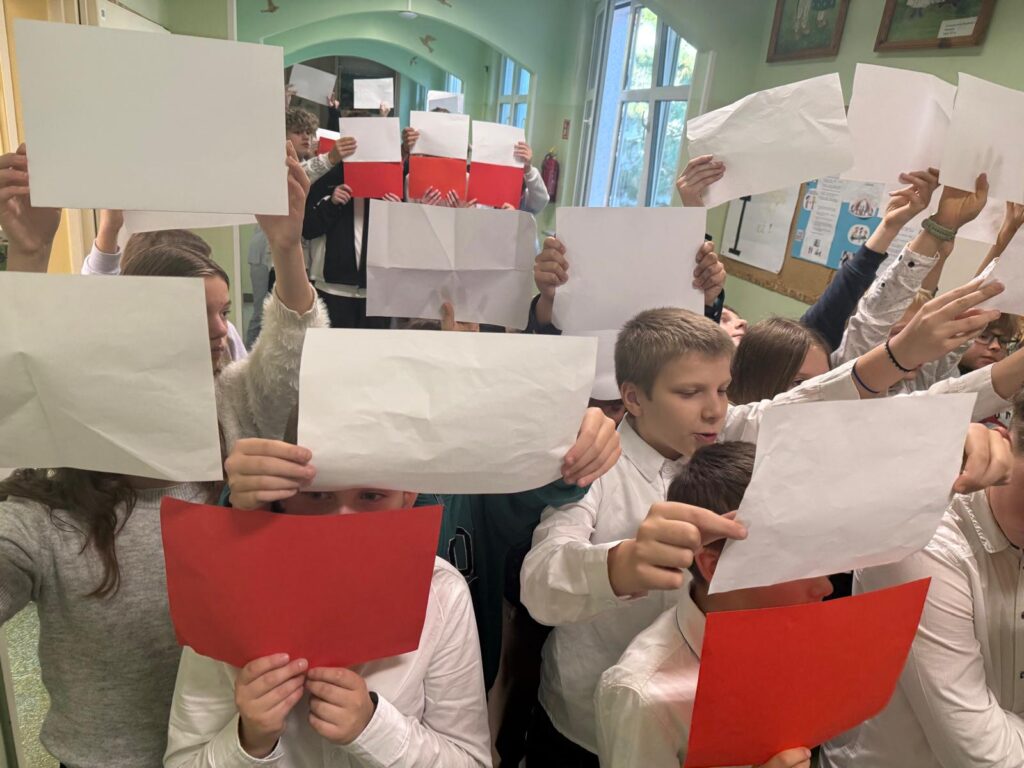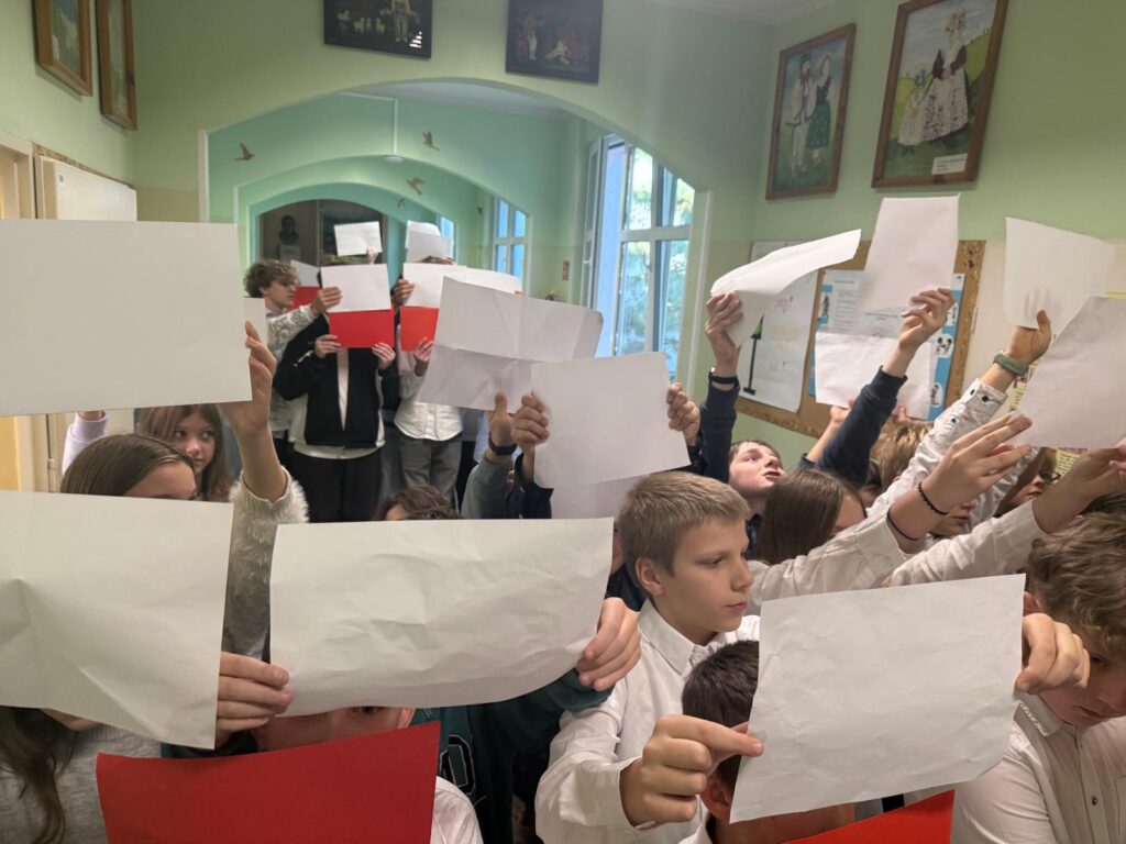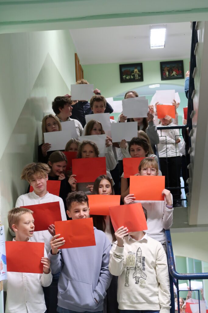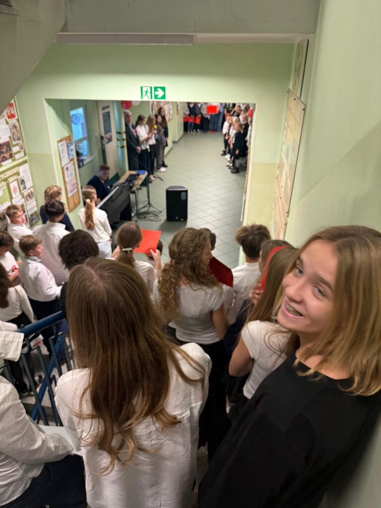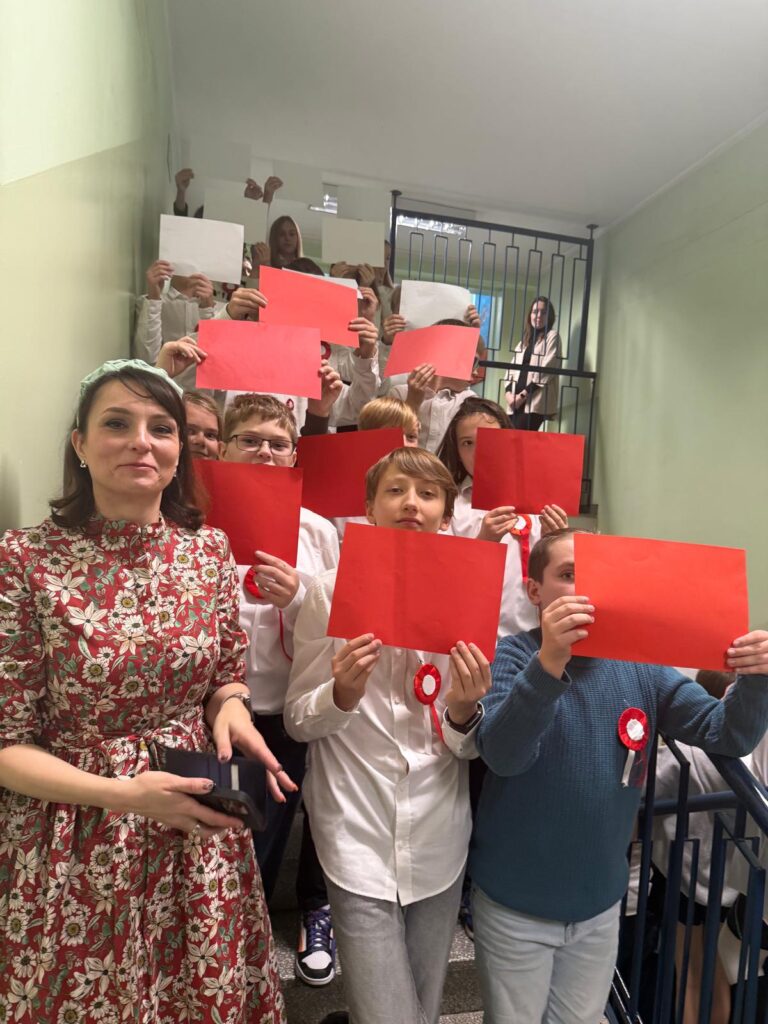 W ramach ogólnopolskiej akcji „Szkoła do Hymnu” społeczność Szkoły Podstawowej nr 28 w Poznaniu wzięła udział w wyjątkowym wydarzeniu upamiętniającym Narodowe Święto Niepodległości. 11 listopada o godzinie 11:11 cała szkoła uroczyście odśpiewała cztery zwrotki „Mazurka Dąbrowskiego”, dając wyraz pamięci o historii i wdzięczności wobec tych, którzy przyczynili się do odzyskania przez Polskę niepodległości. Po hymnie nauczyciel historii skierował do uczniów okolicznościowe przemówienie, w którym podkreślił znaczenie wolności oraz odpowiedzialności za jej pielęgnowanie. Następnie Marta i Lena zaprezentowały poruszające wykonanie utworu „Szara piechota”. Zwieńczeniem uroczystości było symboliczne stworzenie przez każdą klasę biało-czerwonej flagi, stanowiącej wyraz jedności i szacunku dla narodowych barw.