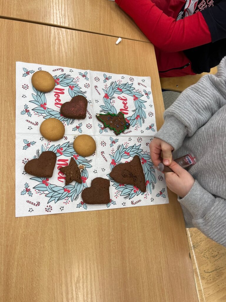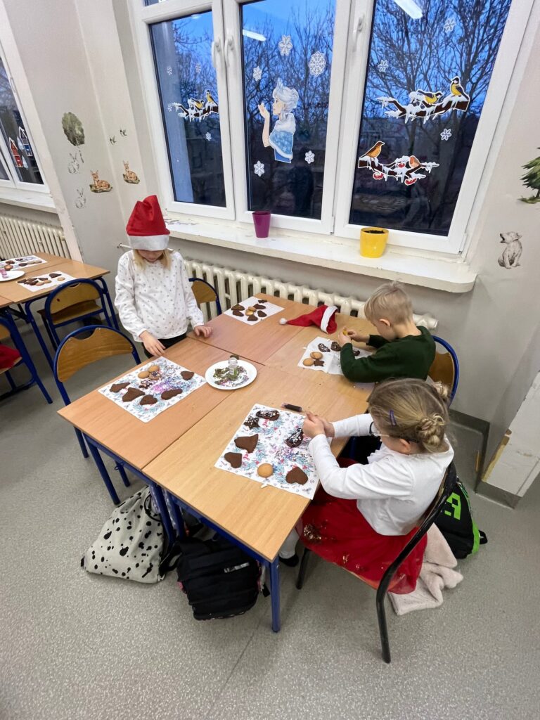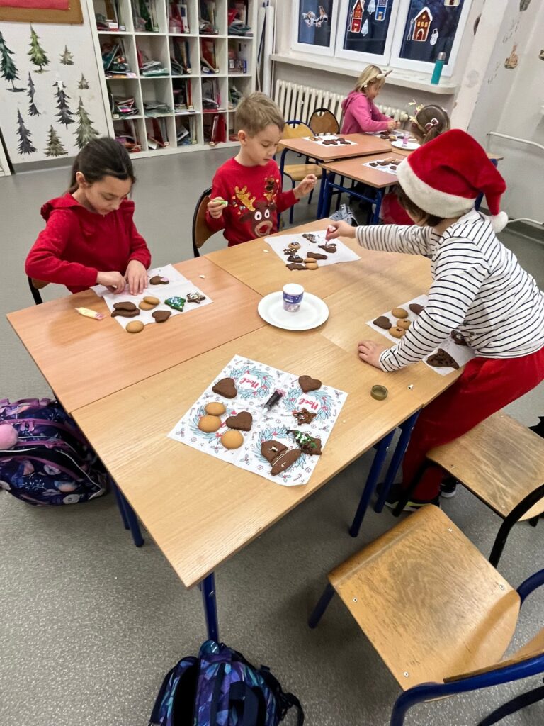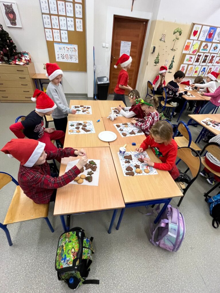W piątek mikołajkowa atmosfera zawitała do klasy 1b. Uczniowie przyszli do szkoły ubrani mikołajkowo lub w świątecznych sweterkach. Każde z dzieci ozdobiło przygotowane przez rodziców pierniczki i ciasteczka kolorowym lukrem oraz posypką. Na zakończenie każdy uczeń dostał upominek od św. Mikołaja.