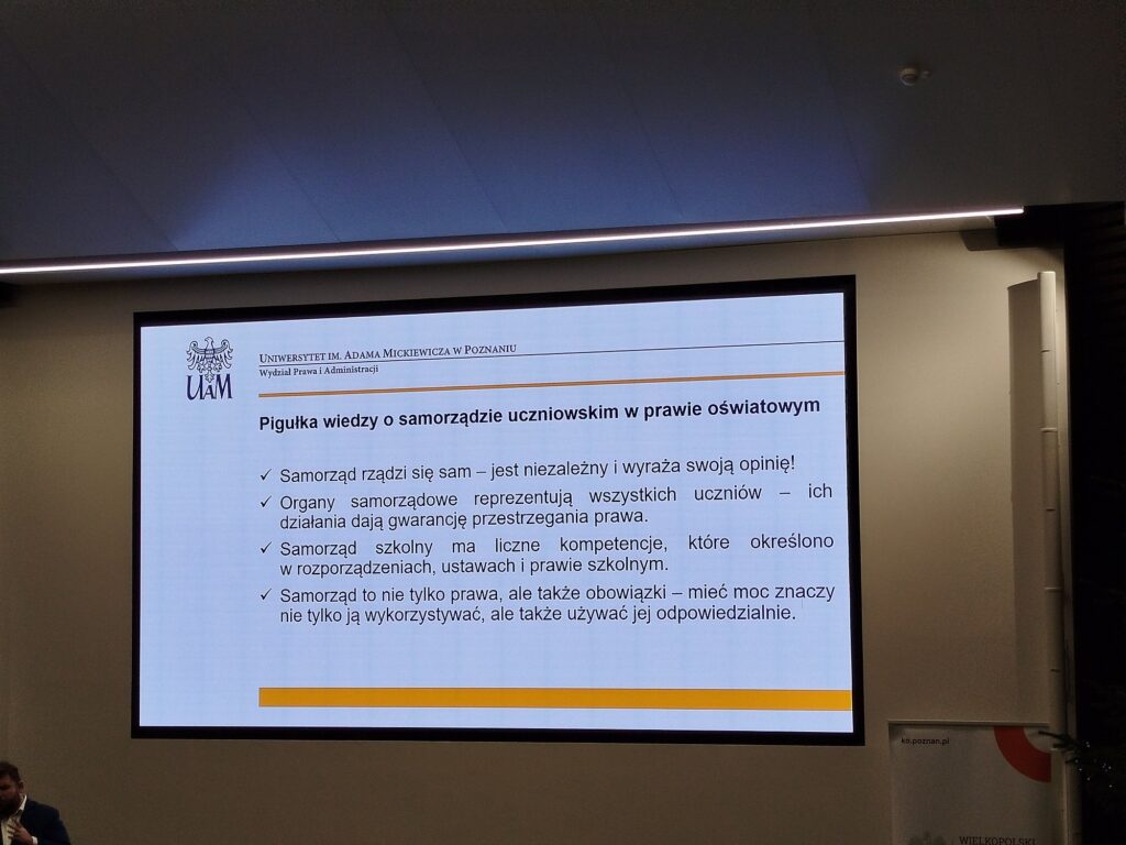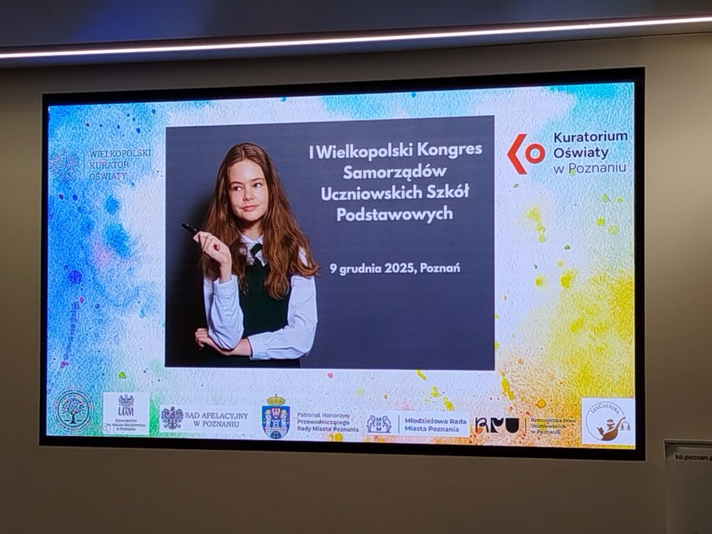 9.12 przedstawiciele Samorządu Uczniowskiego naszej szkoły pojechali na wydział Prawa i Administracji Uniwersytetu Adama Mickiewicza w Poznaniu. Celem wizyty było wzięcie udziału w I Kongresie Samorządów Uczniowskich Szkół Podstawowych. Wydarzenie miało kształt warsztatów i panelu dyskusyjnego. Było ono inspirujące zarówno dla członków samorządu jak i dla opiekuna.
