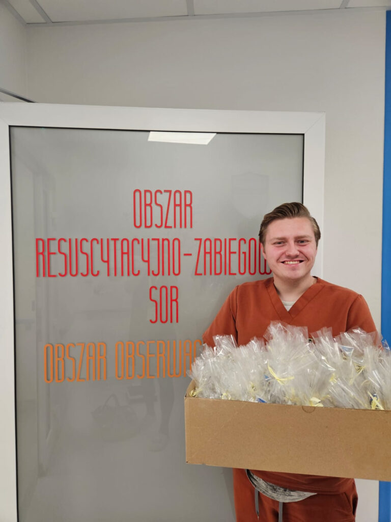 Pomysł narodził się w głowie jednego z naszych uczniów i został zrealizowany dzięki wspólnemu zaangażowaniu społeczności szkolnej (w tym Szkolnego Koła Wolontariatu) oraz pracowników szpitala: Pań: Angeliki Mańkut i Oli Meller, a także Pana z SOR-u.