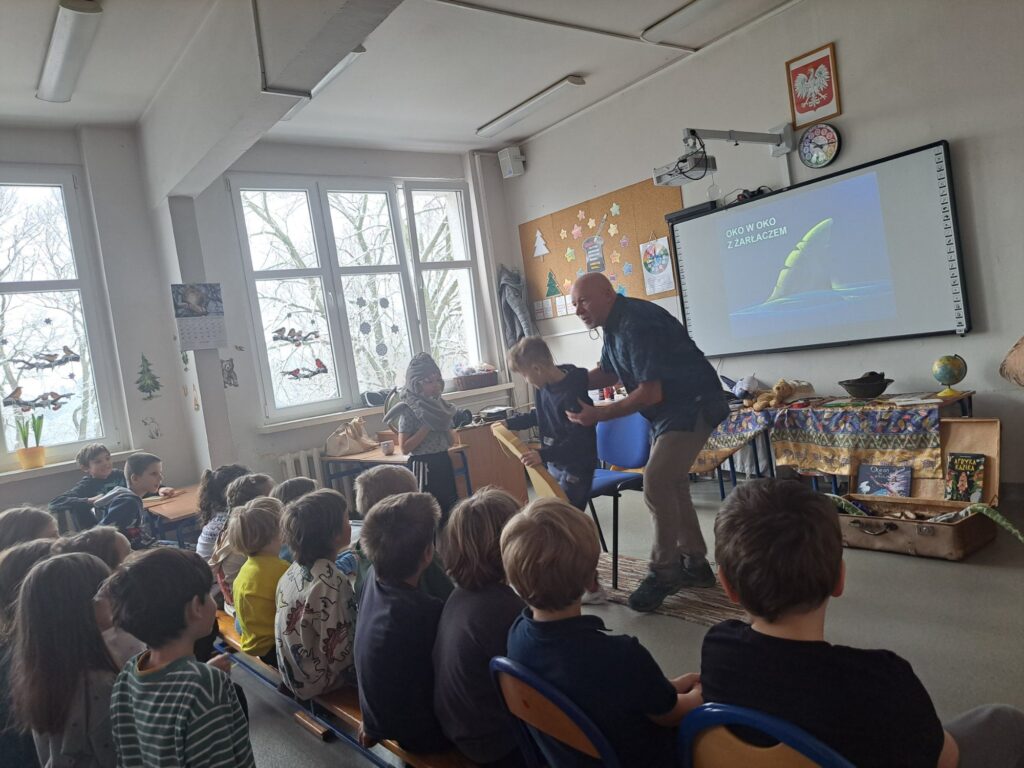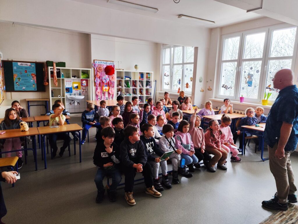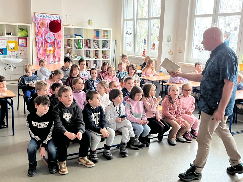 Uczniowie klas 1a, 1b, 1c oraz 3b wzięli udział w spotkaniu z pisarzem Łukaszem Wierzbickim. Autor w ciekawy i przystępny sposób opowiadał o swojej twórczości, podróżach oraz o pracy pisarza. Spotkanie przebiegało w miłej atmosferze i miało bardzo twórczy charakter – uczniowie chętnie zadawali pytania oraz aktywnie uczestniczyli w rozmowie.