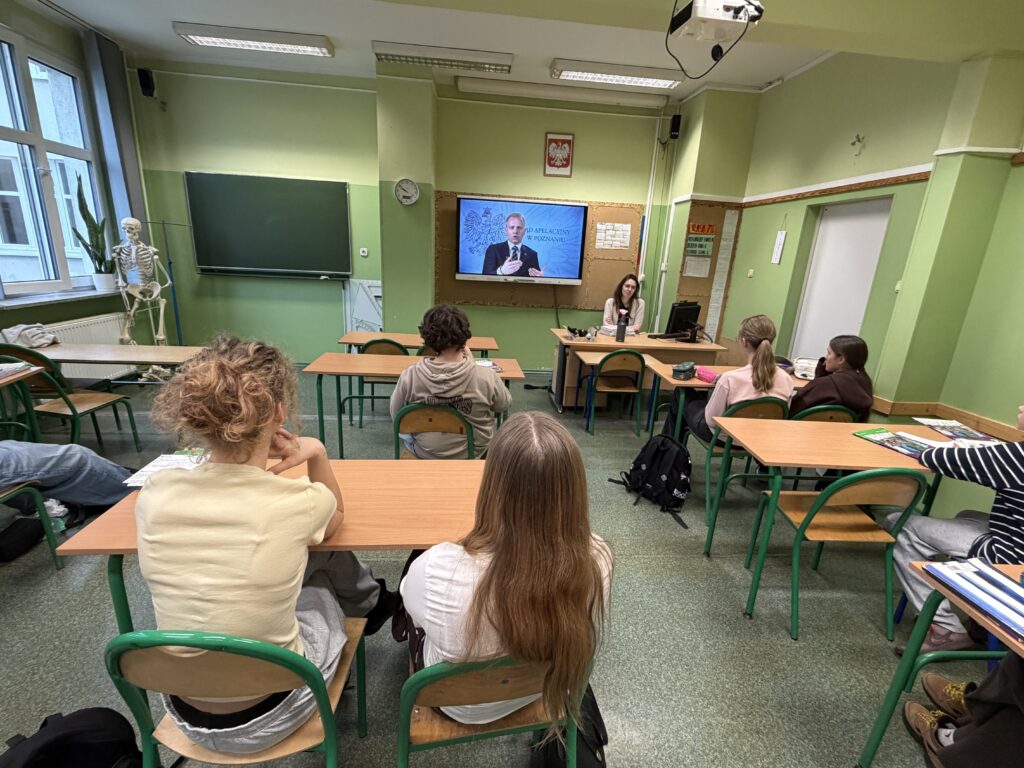 W naszej szkole konsekwentnie kontynuujemy działania z zakresu edukacji prawnej. Po zajęciach z panią mecenas Sylwią Kozłowską, uczniowie wzięli udział w e-lekcji poświęconej zagadnieniom odpowiedzialności prawnej oraz bezpieczeństwa w sieci – „Ochrona wizerunku w dobie AI”. Szkolenie przeprowadził pan Kajetan Kosterkiewicz − sędzią orzekającym w Sądzie Okręgowym w Poznaniu, zastępcą koordynatora ds. Edukacji Prawnej Sądu Apelacyjnego w Poznaniu