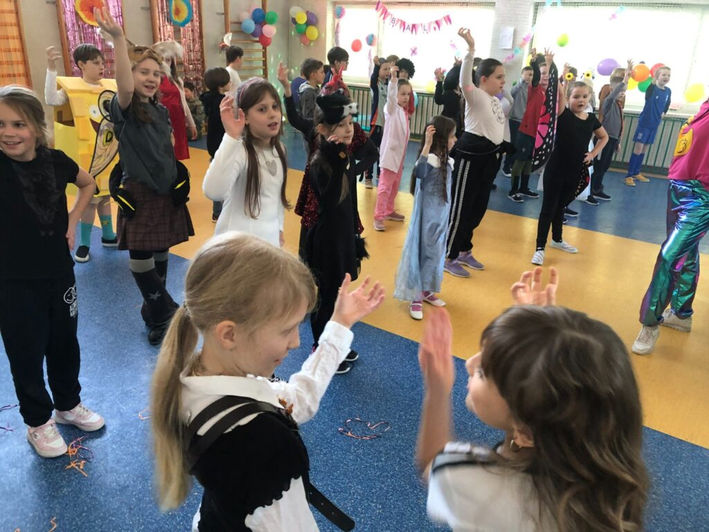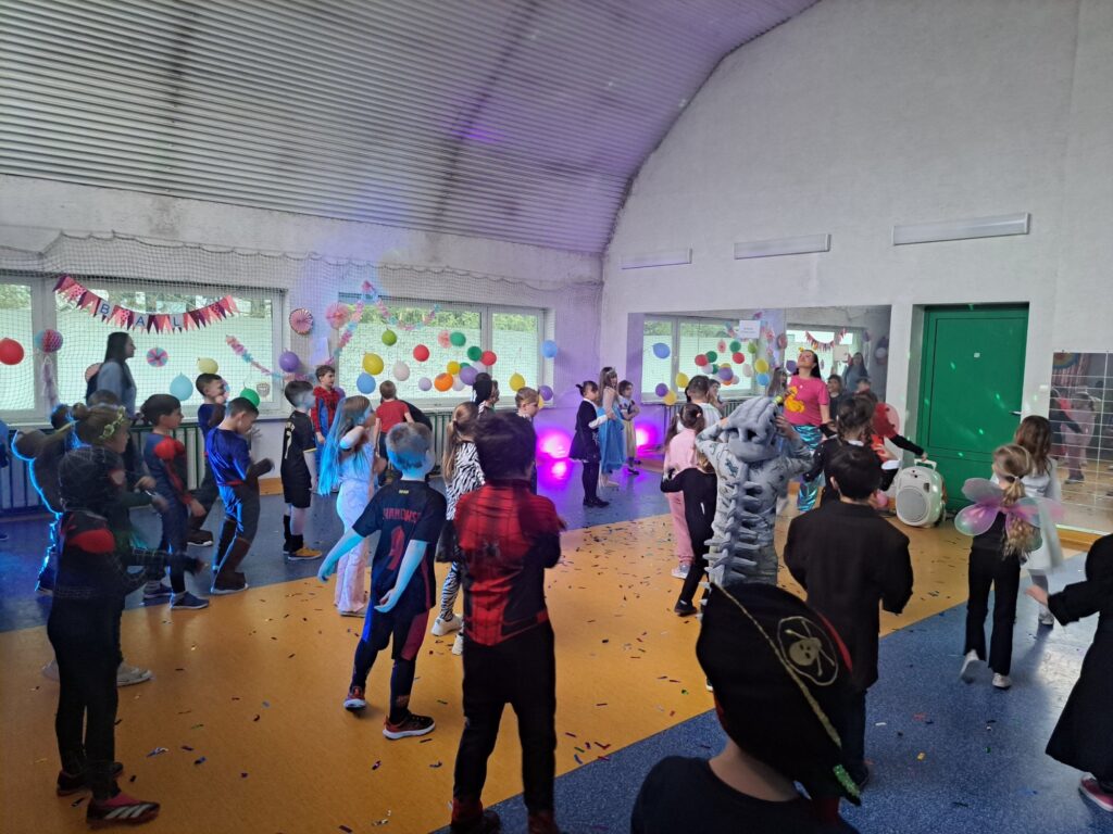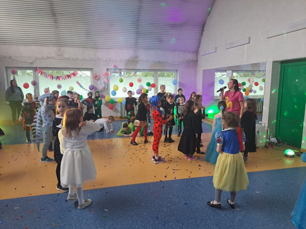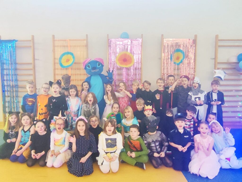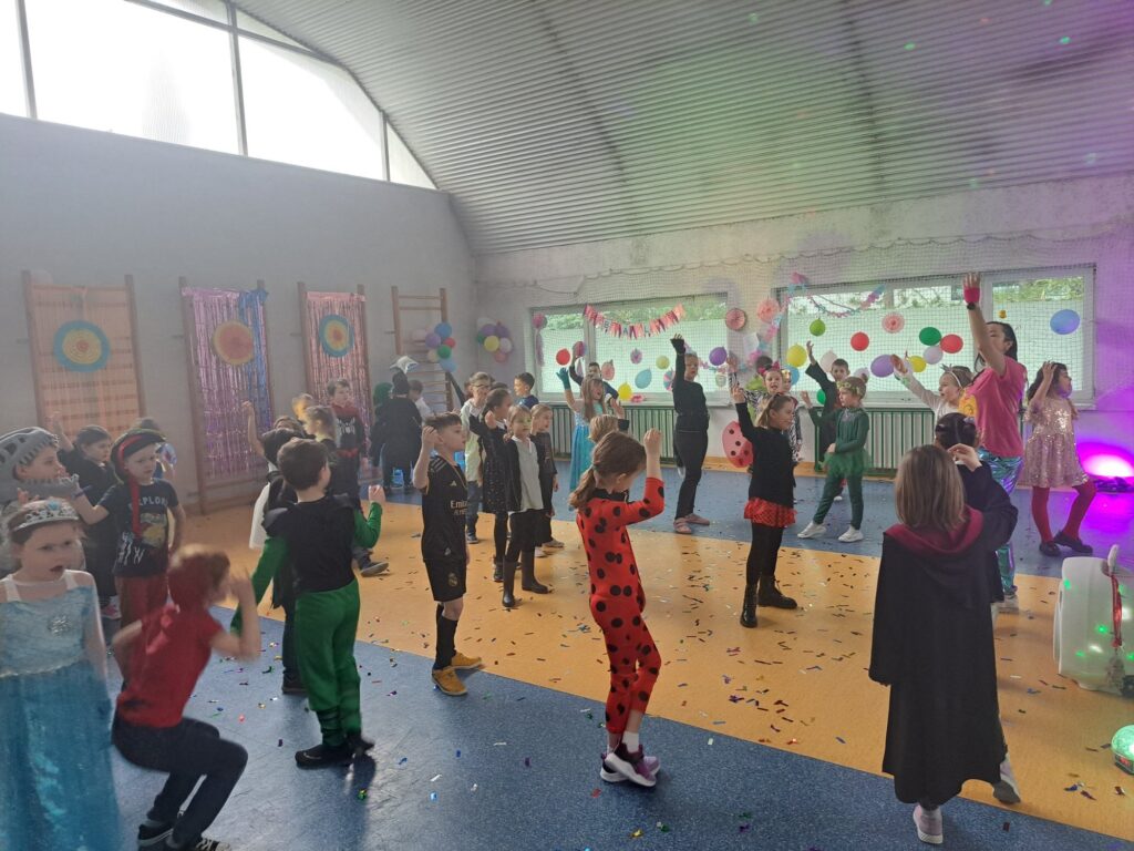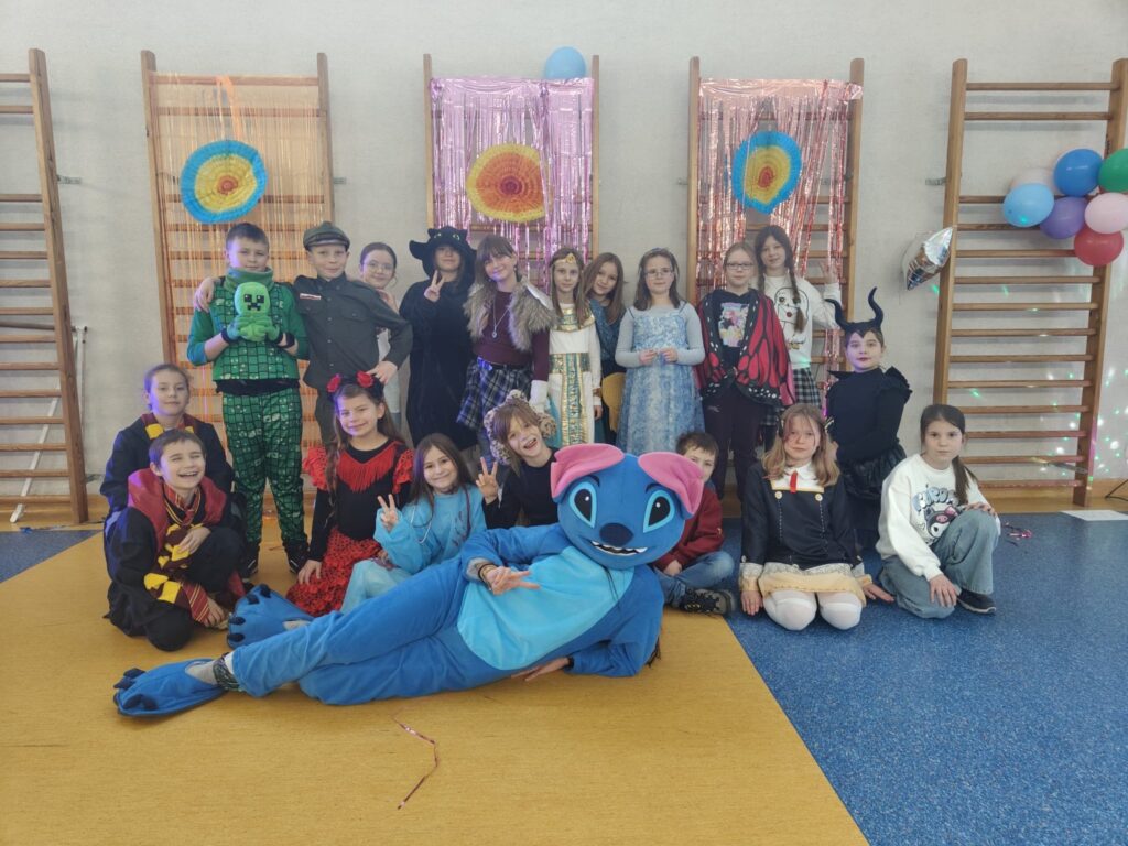 Uczestnicy przebrali się za postacie z bajek i baśni, superbohaterów oraz przedstawicieli różnych zawodów. Wystrój sali tworzył radosną atmosferę i zachęcał do wspólnej zabawy. W rytm muzyki wszyscy chętnie tańczyli i integrowali się, a proponowane atrakcje oraz konkursy cieszyły się dużym zainteresowaniem.