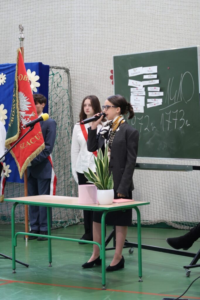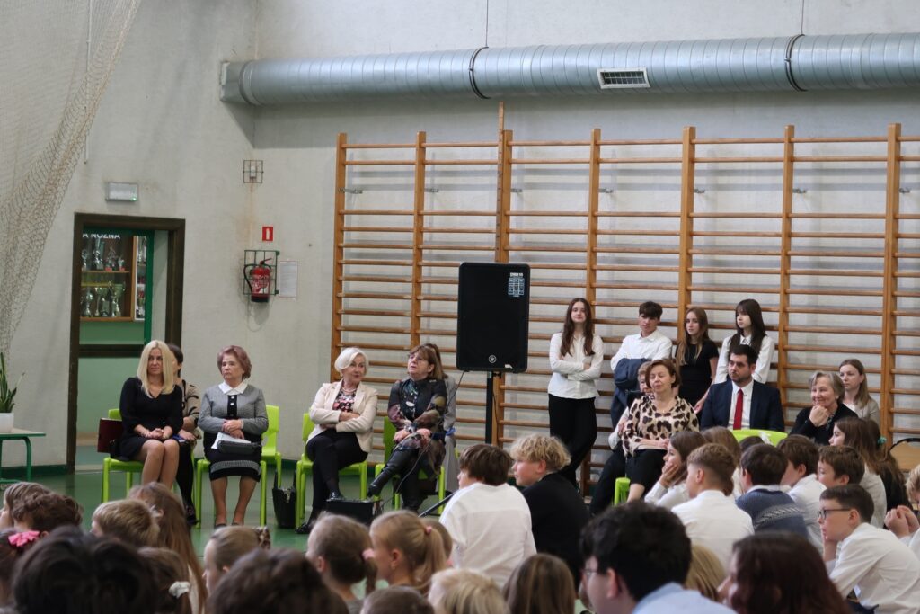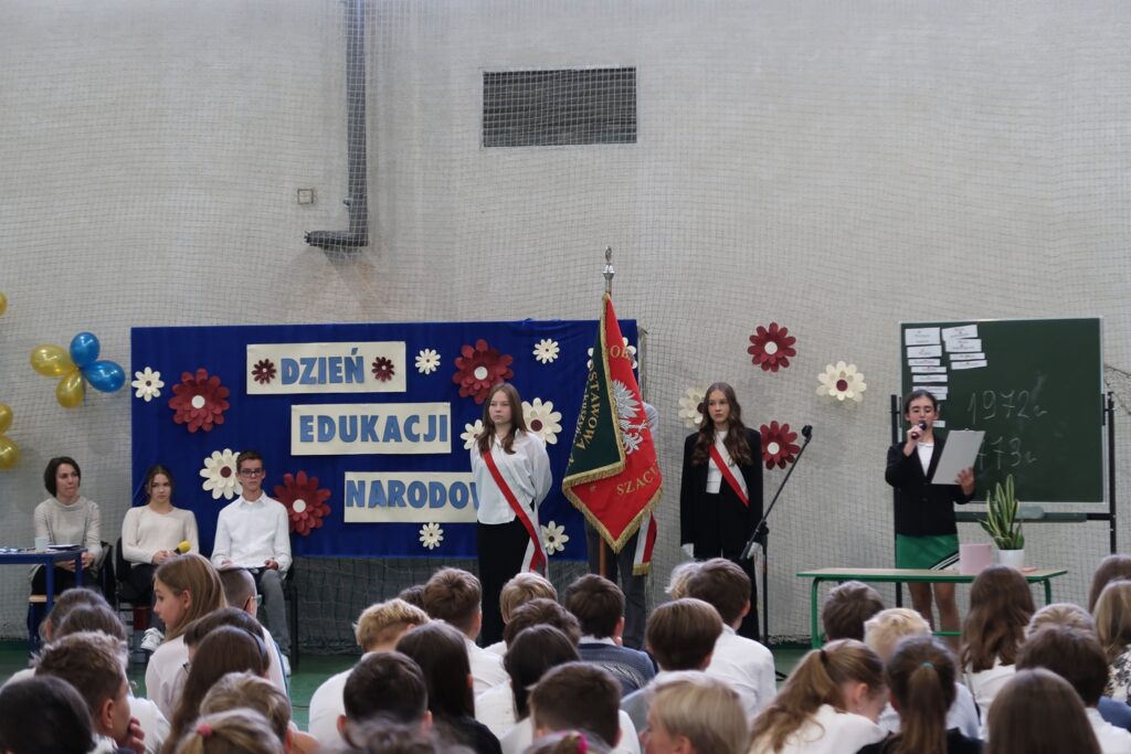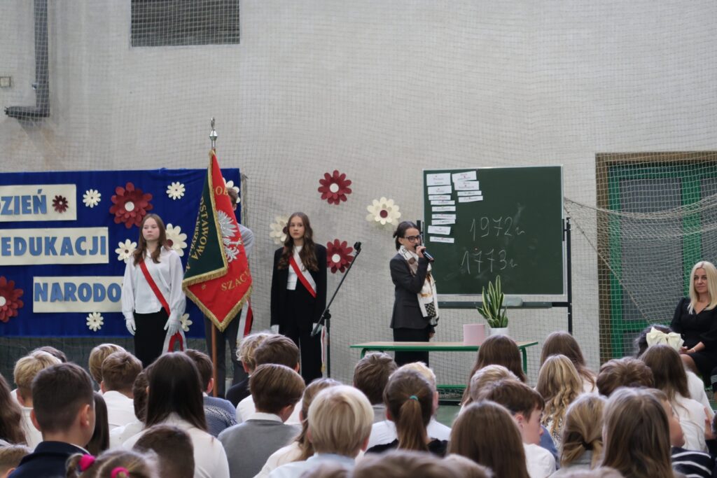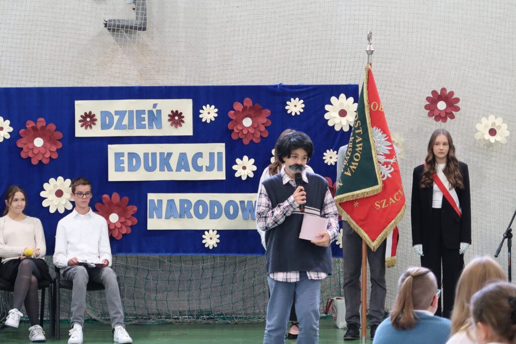 Ważnym momentem tego święta było uczestnictwo w uroczystej akademii, którą przygotowali uczniowie klasy 6a oraz 8c. Przeprowadzili dla wszystkich niecodzienne lekcje, w ciekawy sposób wzbogacając uczniowską wiedzę o historii Dnia Edukacji Narodowej oraz o tym, kiedy święto nauczycieli jest obchodzone w innych krajach. Pojawił się też nauczyciel-czarodziej, a z jego kapelusza – cechy idealnego nauczyciela. Nie obyło się bez sprawdzenia wiedzy uczniów, lecz tym razem bez obawy o słaby stopień! Tylko poprawnie udzielona odpowiedź nagradzana była cukierkiem.
