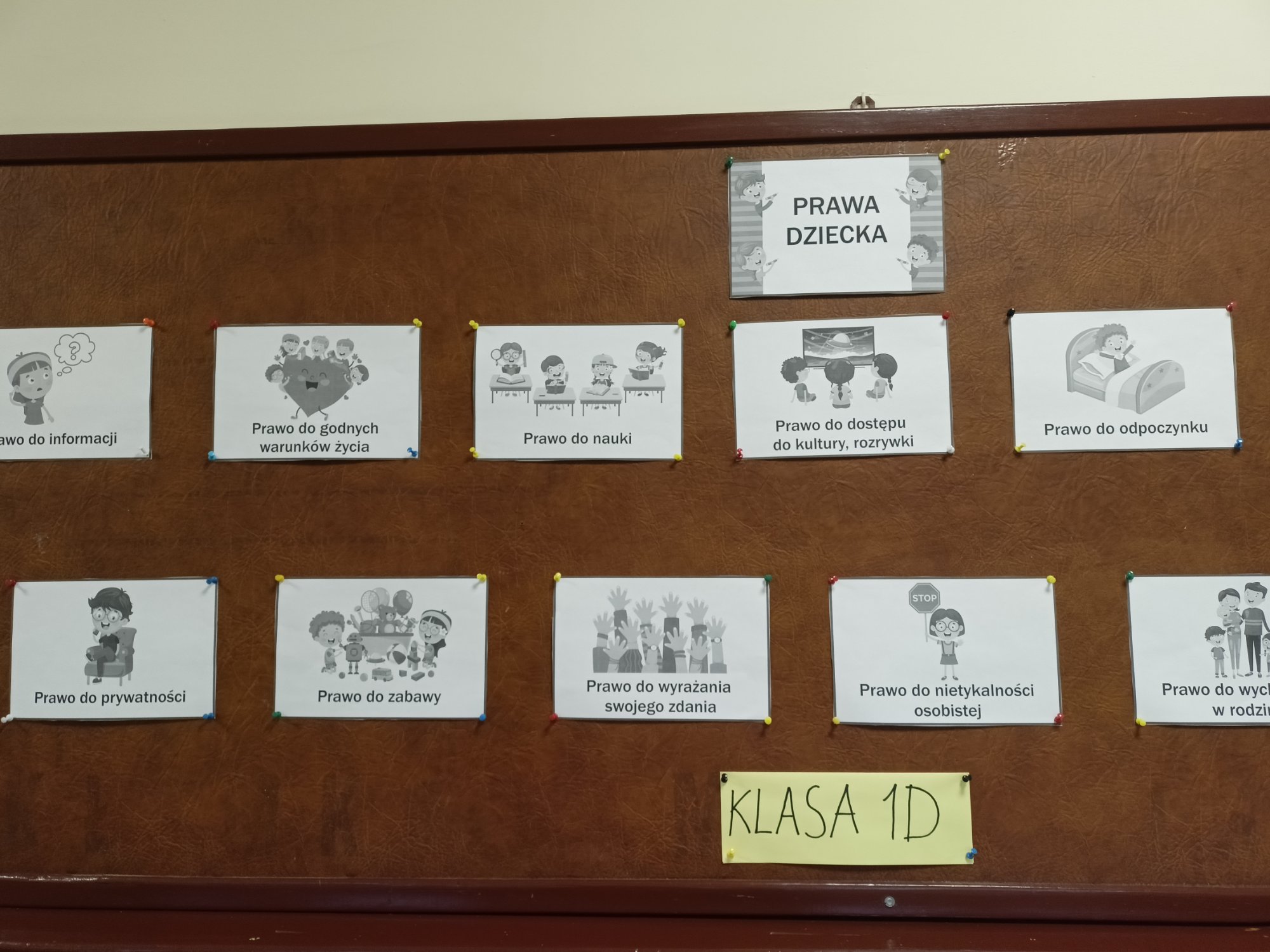 20 listopada uczniowie klasy 1d wraz z wychowawczynią, panią Dorotą Zubkowicz, obchodzili Międzynarodowy Dzień Praw Dziecka. Poznali najważniejsze zapisy Konwencji o prawach dziecka, a następnie przygotowali gazetkę poświęconą zarówno dziecięcym prawom, jak i obowiązkom. Na znak solidarności z młodymi ludźmi na całym świecie, których prawa są łamane, wszyscy ubrali się tego dnia na niebiesko.