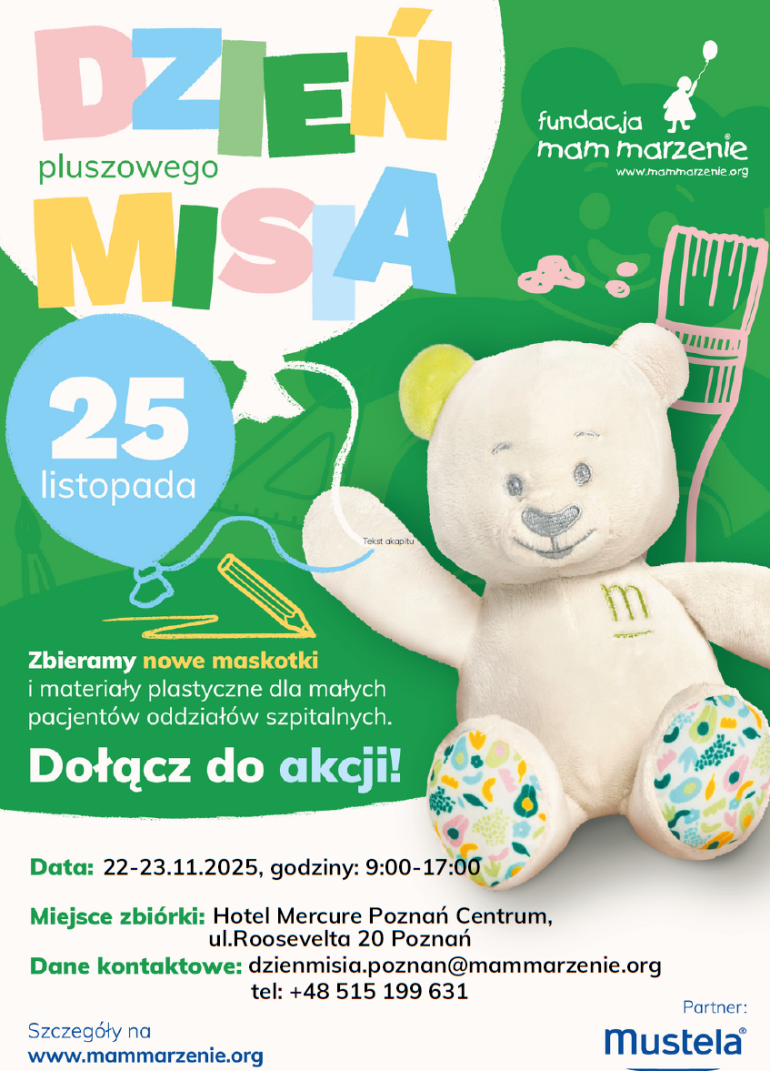 Drodzy Uczniowie, Rodzice, Nauczyciele 😊Wielkimi krokami zbliża się 25 listopada – Dzień Pluszowego Misia. Już od ponad 10 lat wolontariusze Fundacji Mam Marzenie, dostrzegając ogromną potrzebę wsparcia psychologicznego wśród dzieci przebywających w szpitalach, przekazują małym pacjentom pluszaki i zabawki, aby choć na chwilę oderwać ich myśli od trudnej codzienności leczenia. Te drobne gesty ciepła i … Czytaj dalej