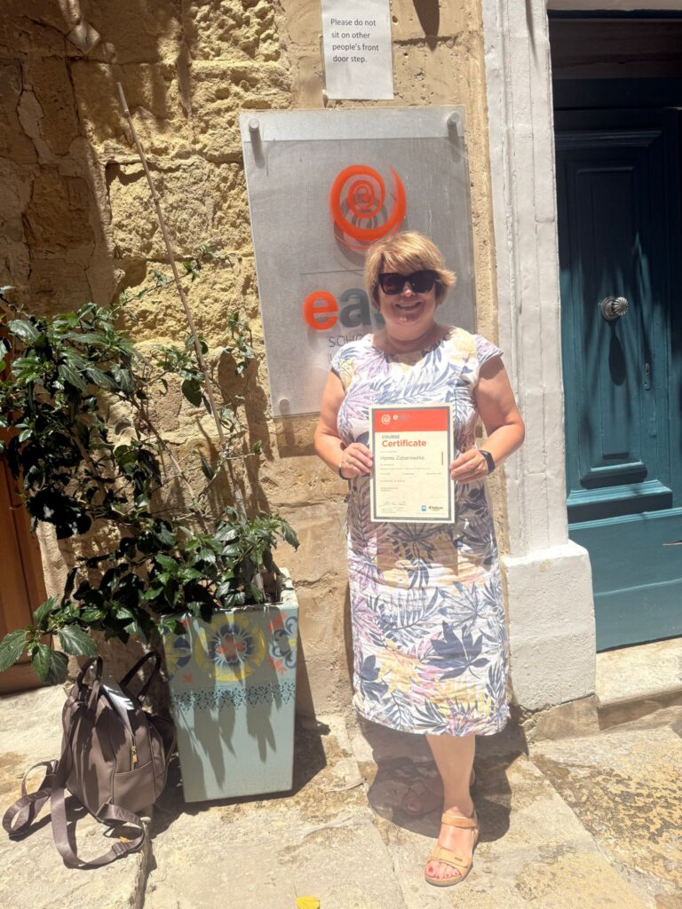 W dniach 7-18 lipca 2025 roku, w ramach projektu „Zagraniczna mobilność edukacyjna uczniów i kadry edukacji szkolnej” współfinansowanego ze środków Europejskiego Funduszu Społecznego Plus w Programie Fundusze Europejskie dla Rozwoju Społecznego 2021-2027 realizowanego na zasadach Programu Erasmus+, Hanna Zaborowska uczestniczyła w szkoleniu zagranicznym „Język angielski biznesowy” w Easy School of Languages w Valletta na Malcie w ramach projektu „Z pasją zawodową przez kontynent – wspólna europejska przeszłość prowadzi do przyszłości”. Podczas zajęć w Valletcie nauczycielka rozwijała kompetencje językowe i współpracowała w międzynarodowych zespołach. Zdobyta wiedza i doświadczenia na kursie wzbogacą codzienną pracę naszej szkoły i pomogą wspierać uczniów w rozwijaniu kluczowych kompetencji. Rozwijane na kursie umiejętności językowe w znaczący sposób wsparły osobisty rozwój zawodowy naszej kursantki.